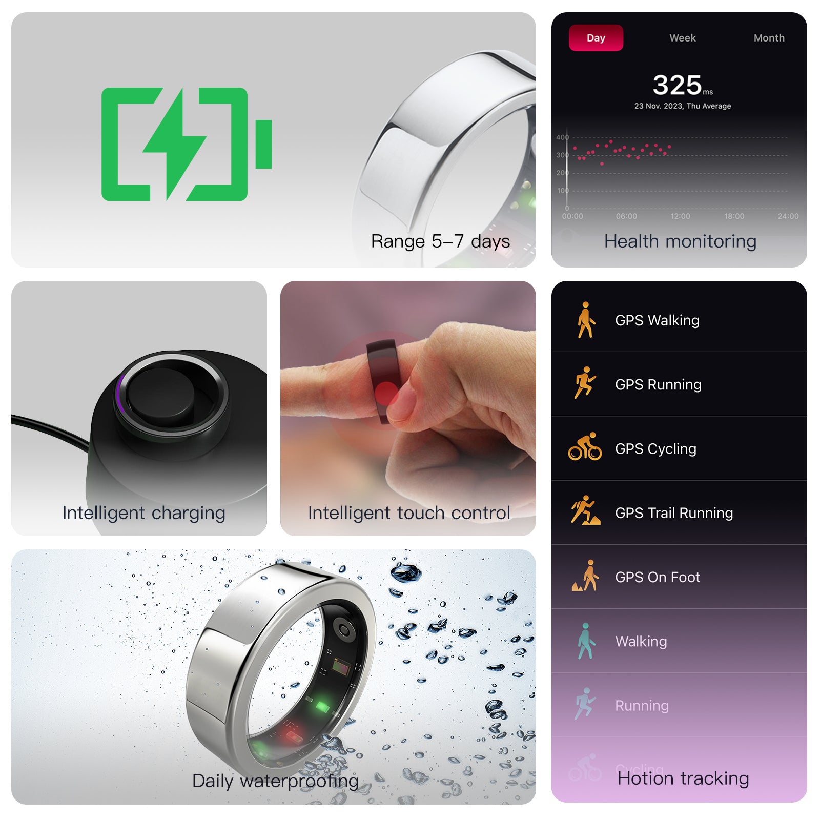Whatever your favorite sport is - GPS tracking, indoor or outdoor activities, the SMART RING has it all. Simply wear the lightweight ring to view and record your sports data, including steps, distance, calories, heart rate, pace, and more.