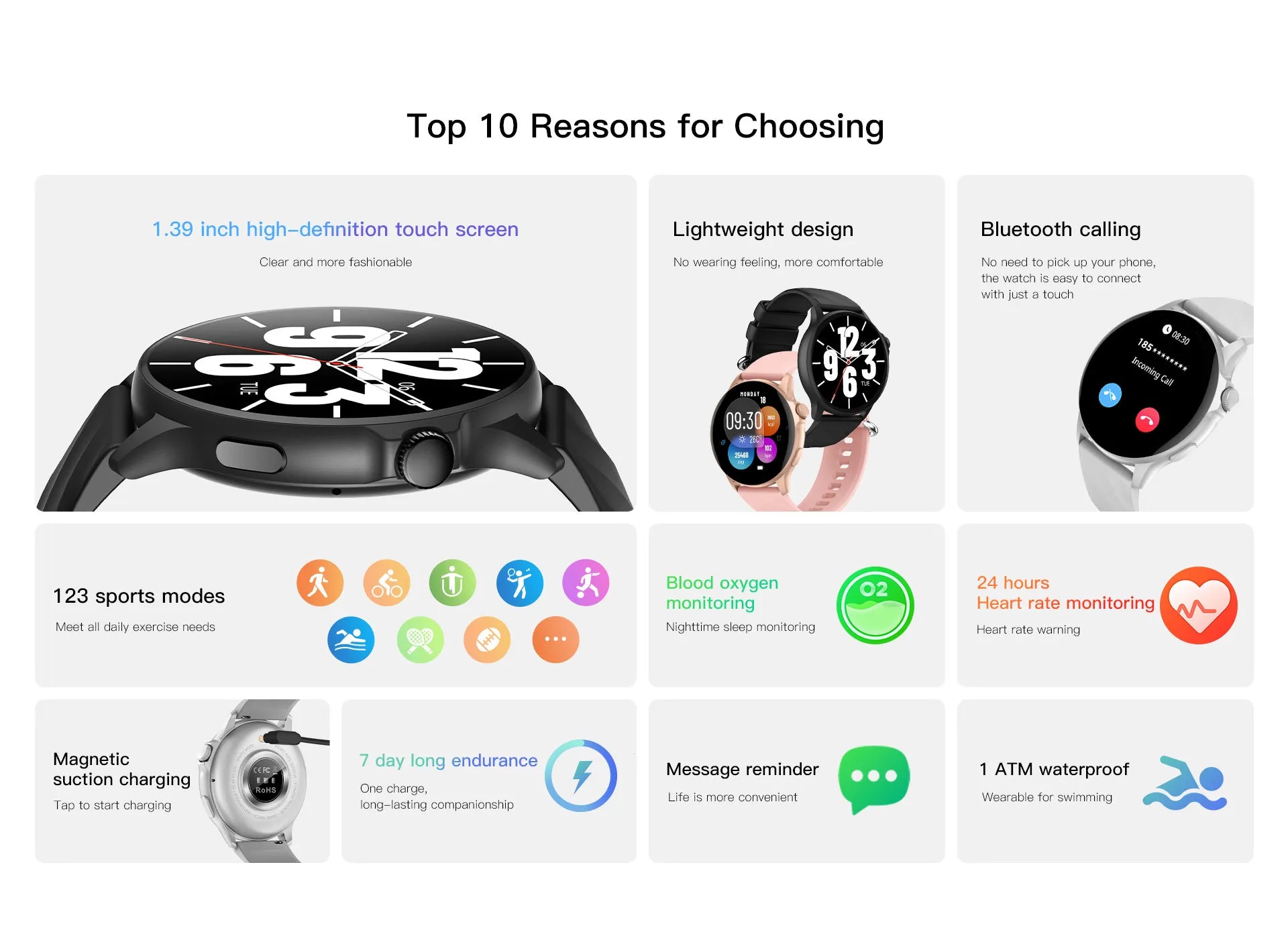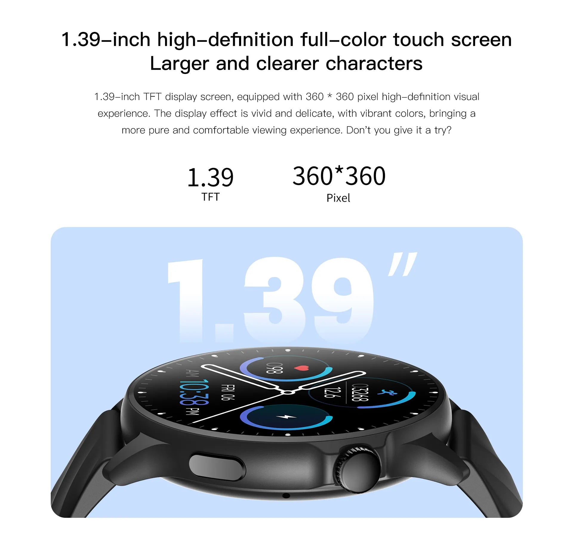 Smart Watch - 1.39-inch HD Touch Screen, Full Day Health Monitoring, 123+ Sport Modes & 10-Day Battery Life