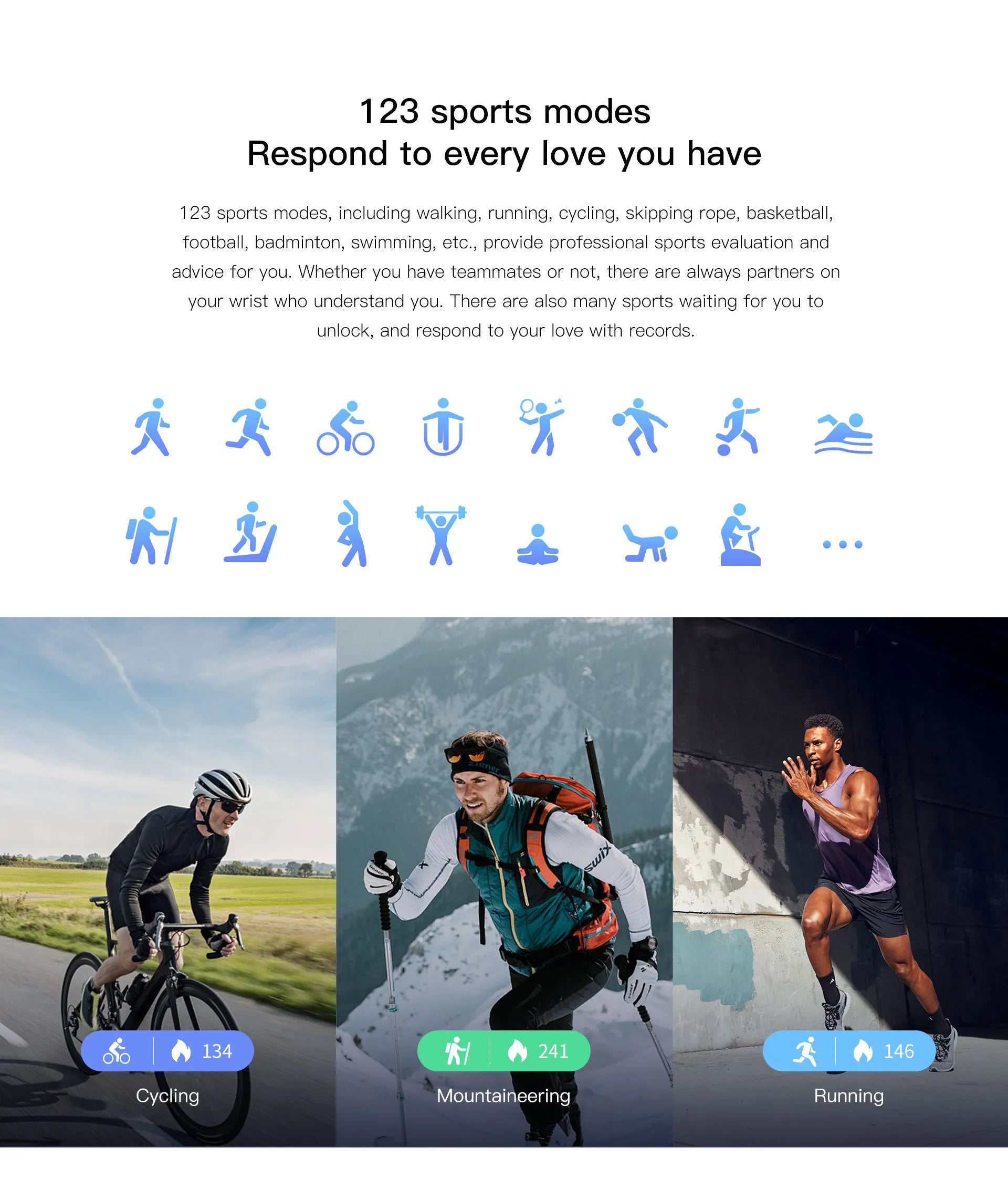123 Sports Modes – Walking, Running, Cycling, Swimming, and More with Expert Evaluation and Tracking