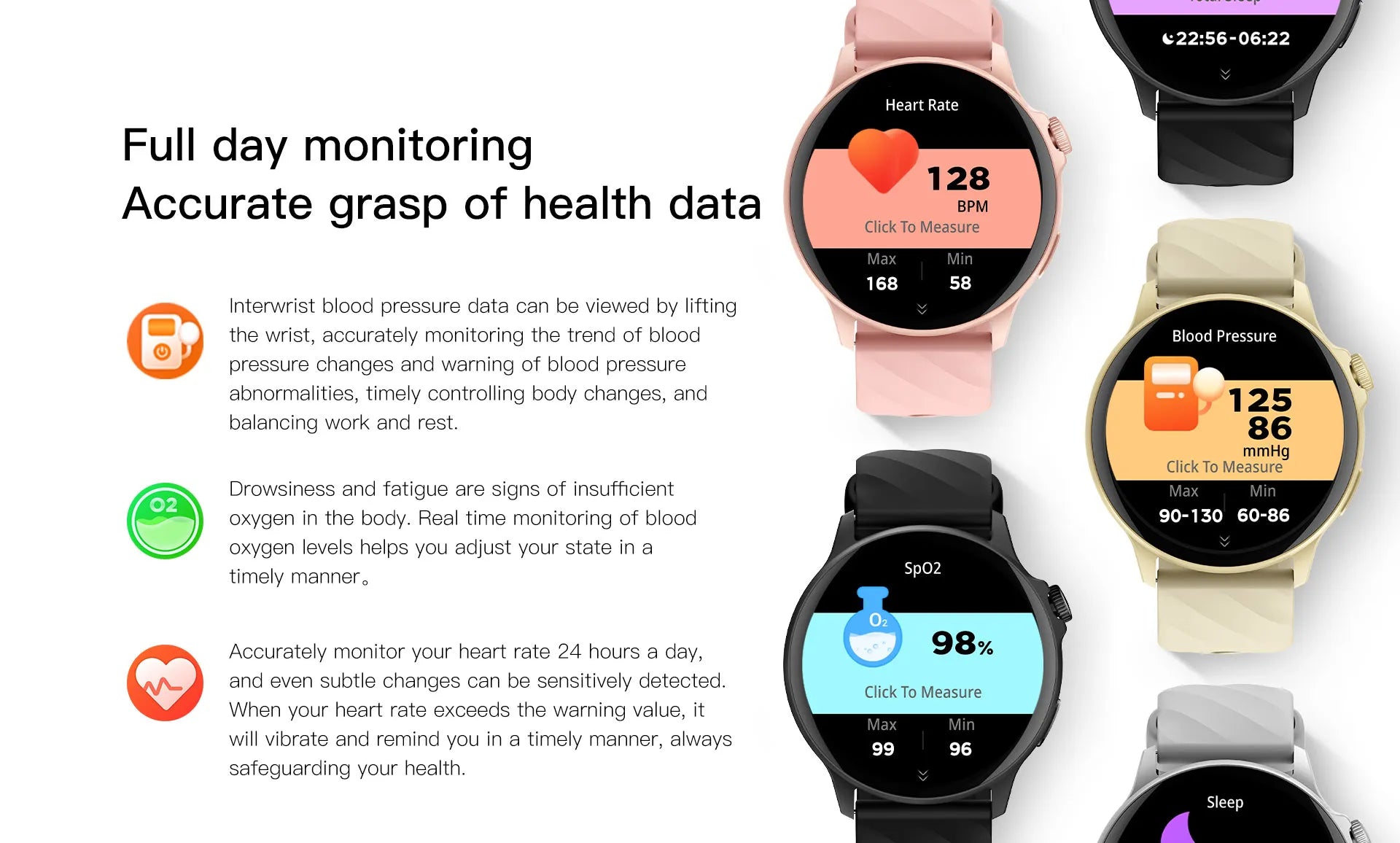Full-Day Monitoring – Real-Time Blood Pressure, Blood Oxygen, and Heart Rate Monitoring for Optimal Health