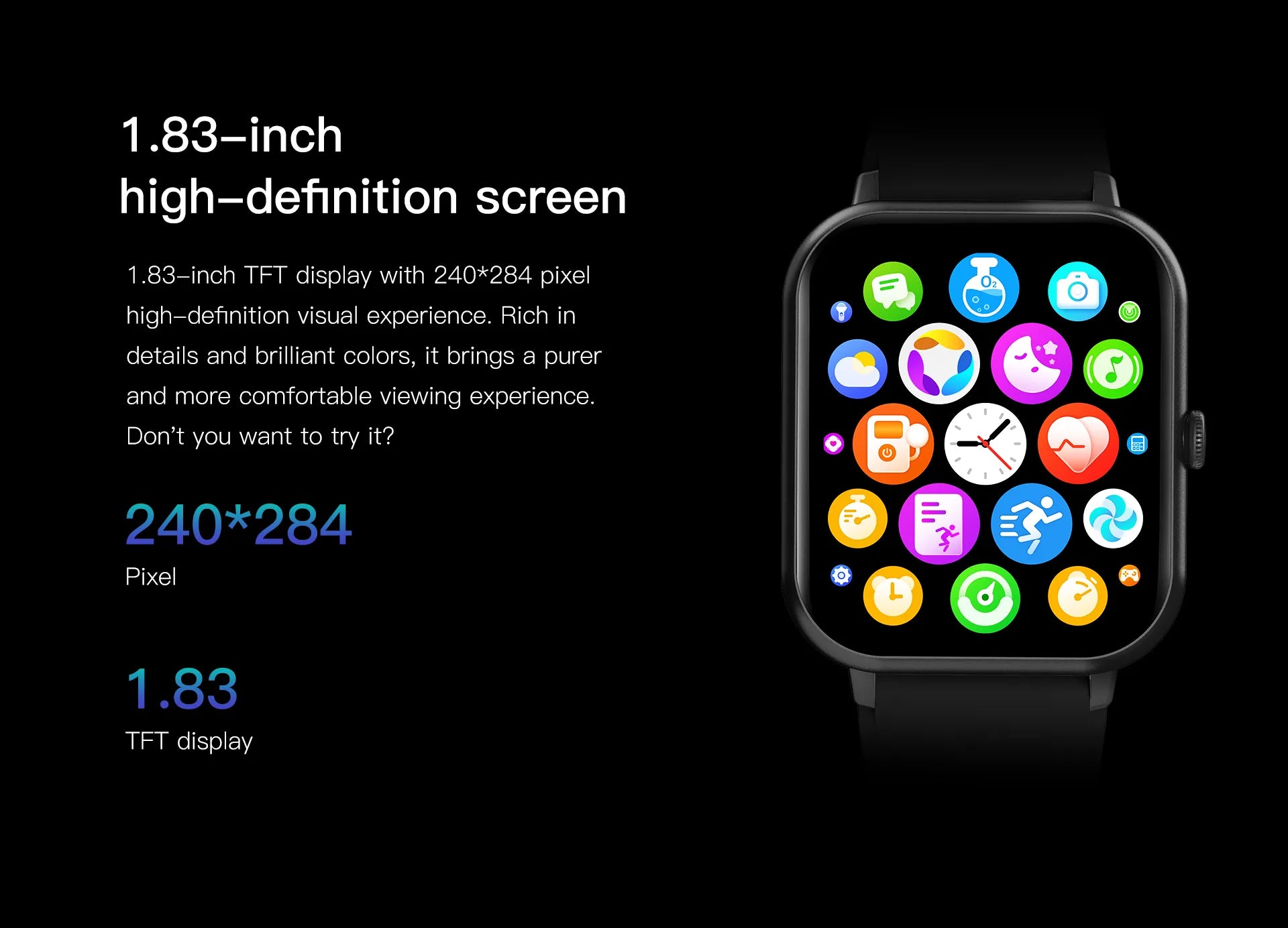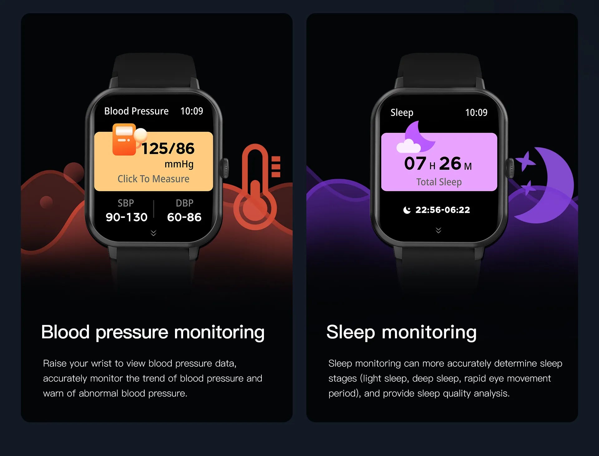 Our smartwatch is fitted with advanced sensors that accurately monitor key health indicators such as heart rate, blood oxygen levels, and sleep quality. These insights can help you better understand your physical condition and take appropriate health measures.