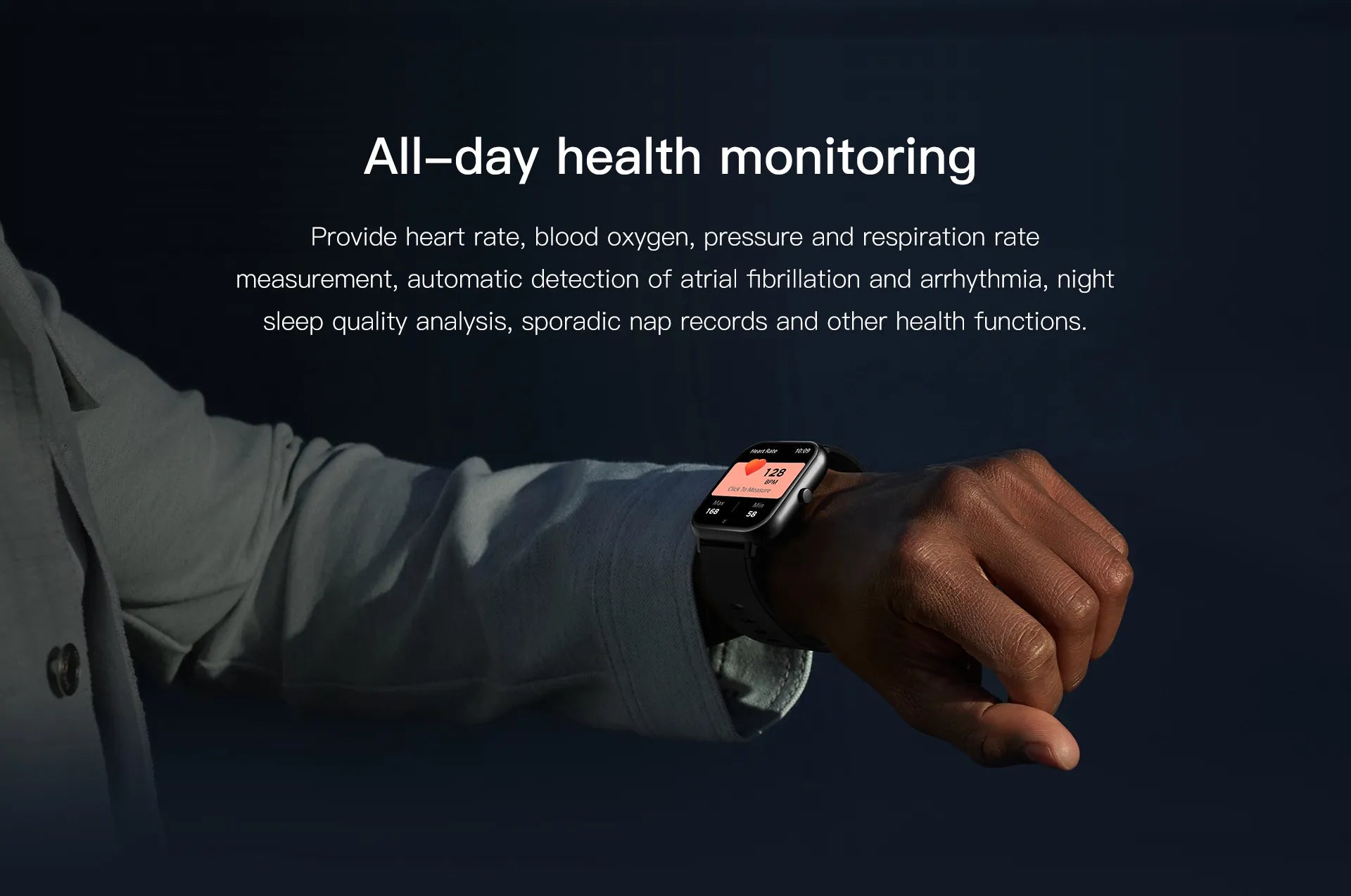 Smartwatch with 24/7 Health Monitoring for Heart Rate, Blood Pressure, Blood Oxygen, and Sleep Quality