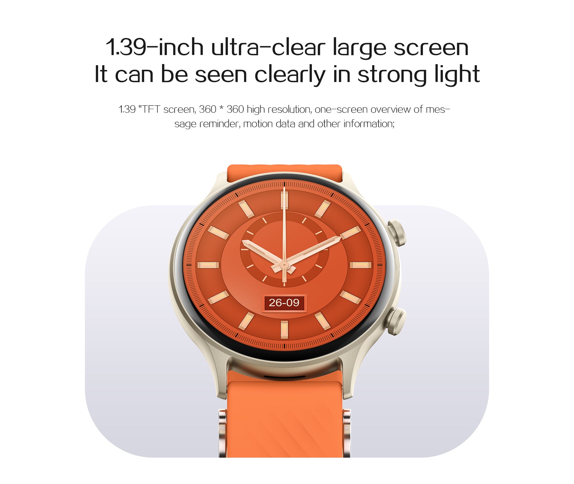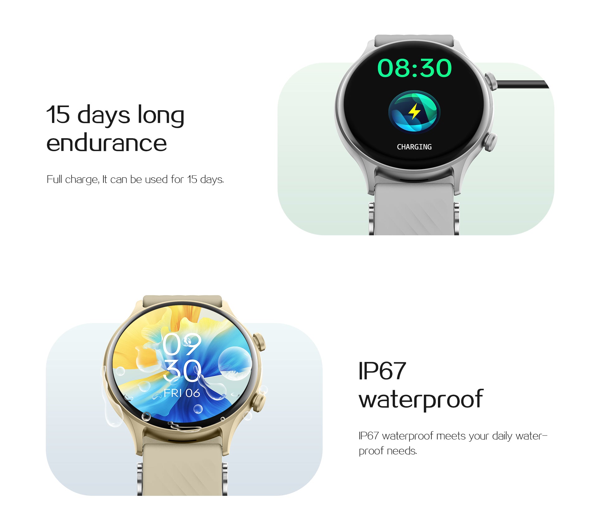 The Amovan Smart Watch ZL73J combines style and performance with its 1.39-inch ultra-clear display and 100+ customizable watch faces for endless personalization. Stay active with 123 sports modes offering tailored fitness tracking for every workout, while 24/7 heart rate and blood oxygen monitoring keep you informed about your health. Enjoy 15 days of battery life for uninterrupted use and rely on IP67 waterproofing for durability in any weather. Whether for fitness or daily tasks, the ZL73J delivers a seamless experience with style, health, and long-lasting power.