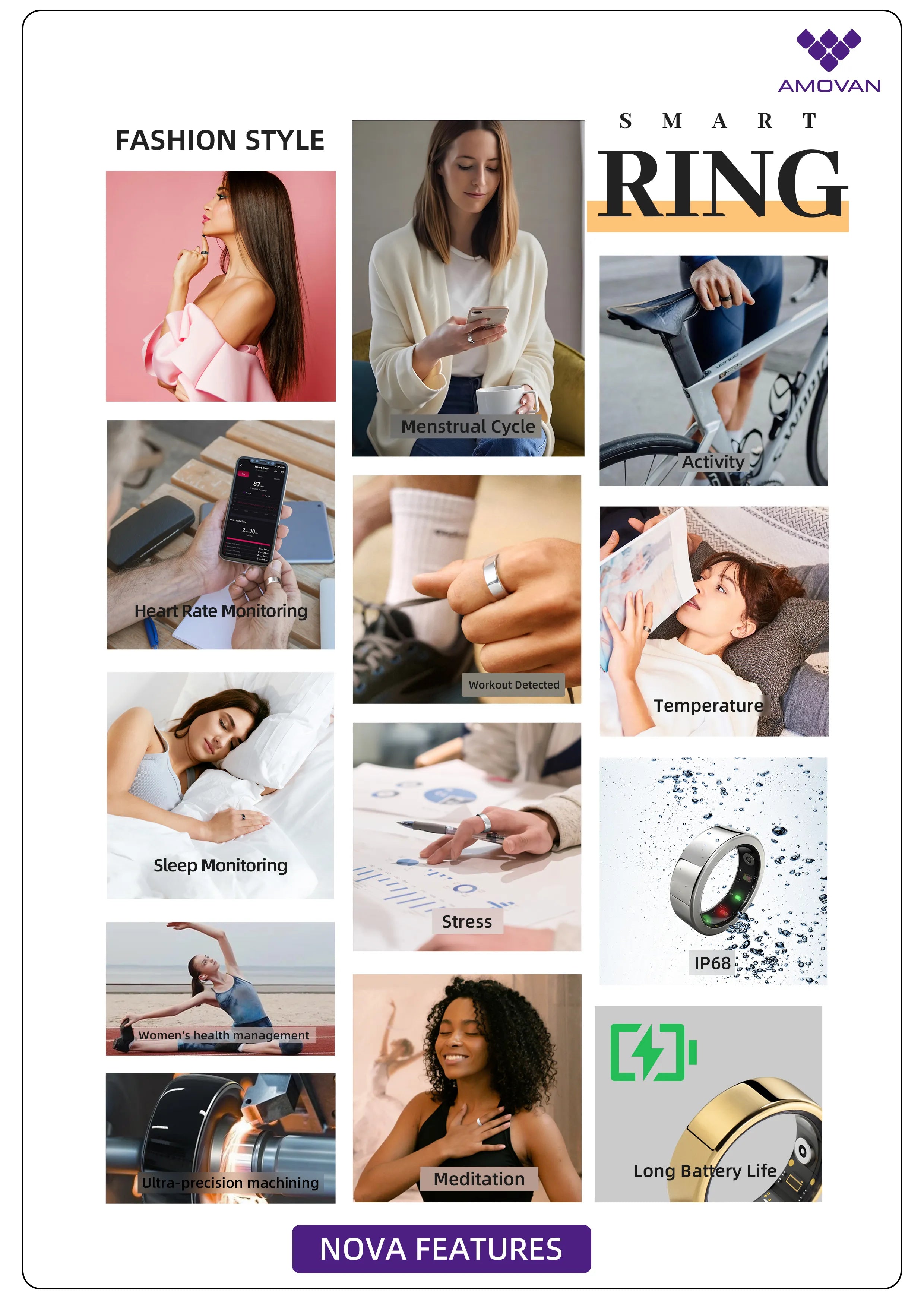 Put on the AMOVAN Nova Smart ring, immerse yourself in fitness, unleash your true self, and stride towards health and vitality.