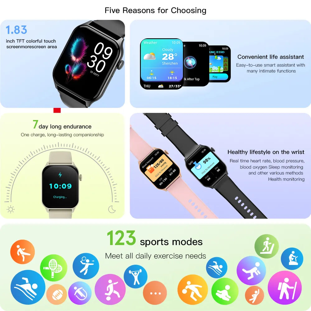 Smartwatch with 1.83-inch Ultra-Large Full Touch TFT Screen, 240x284 Resolution, Borderless Design