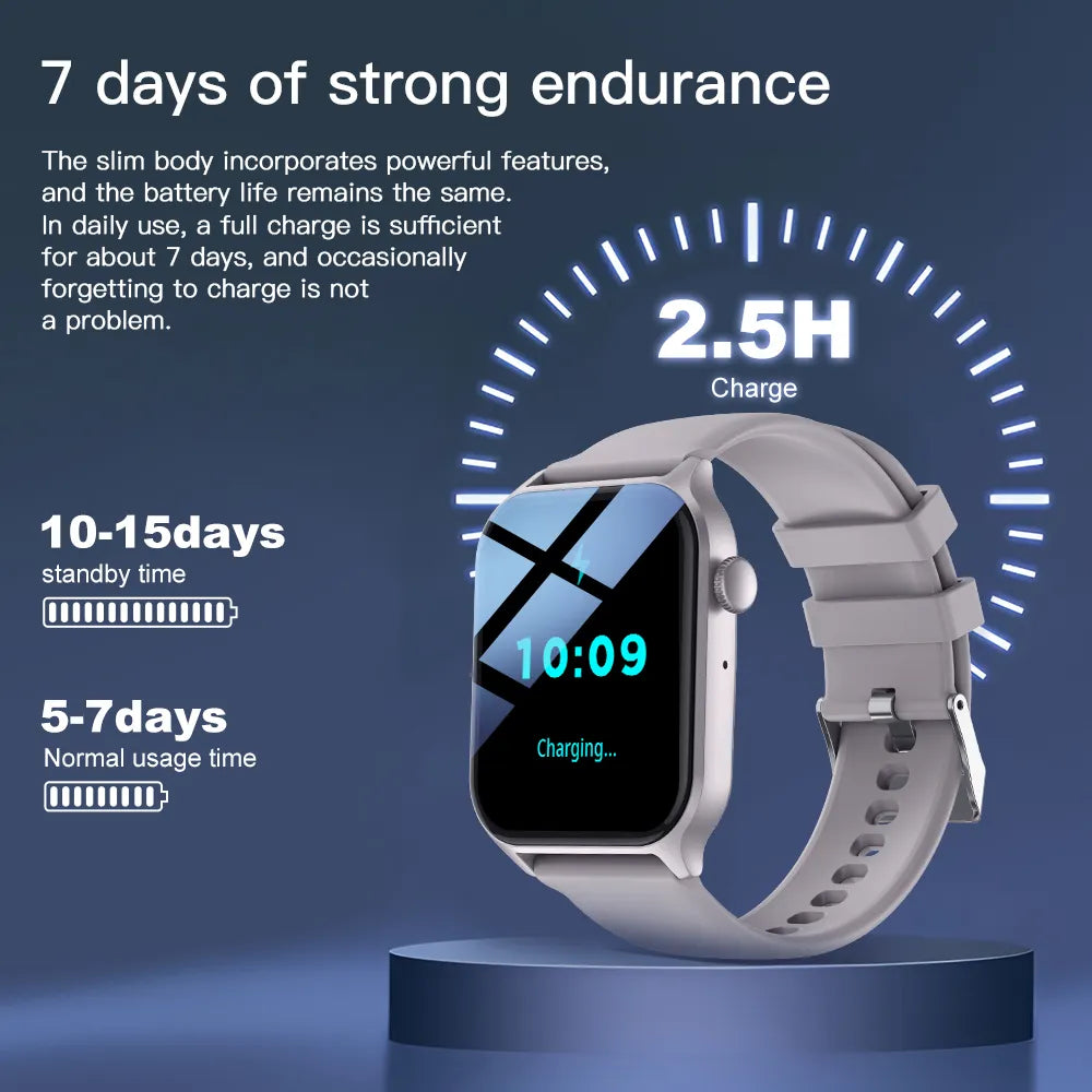 Our smartwatch is equipped with the latest low-power technology, providing up to 7 days of battery life on a single charge. This means you can go about your week without worrying about recharging, whether you're in the middle of a busy workday or on a weekend getaway.
