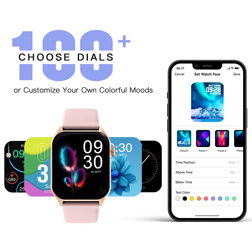 Smartwatch with Customizable Watch Face, Colorful Moods, Time & Date Positioning